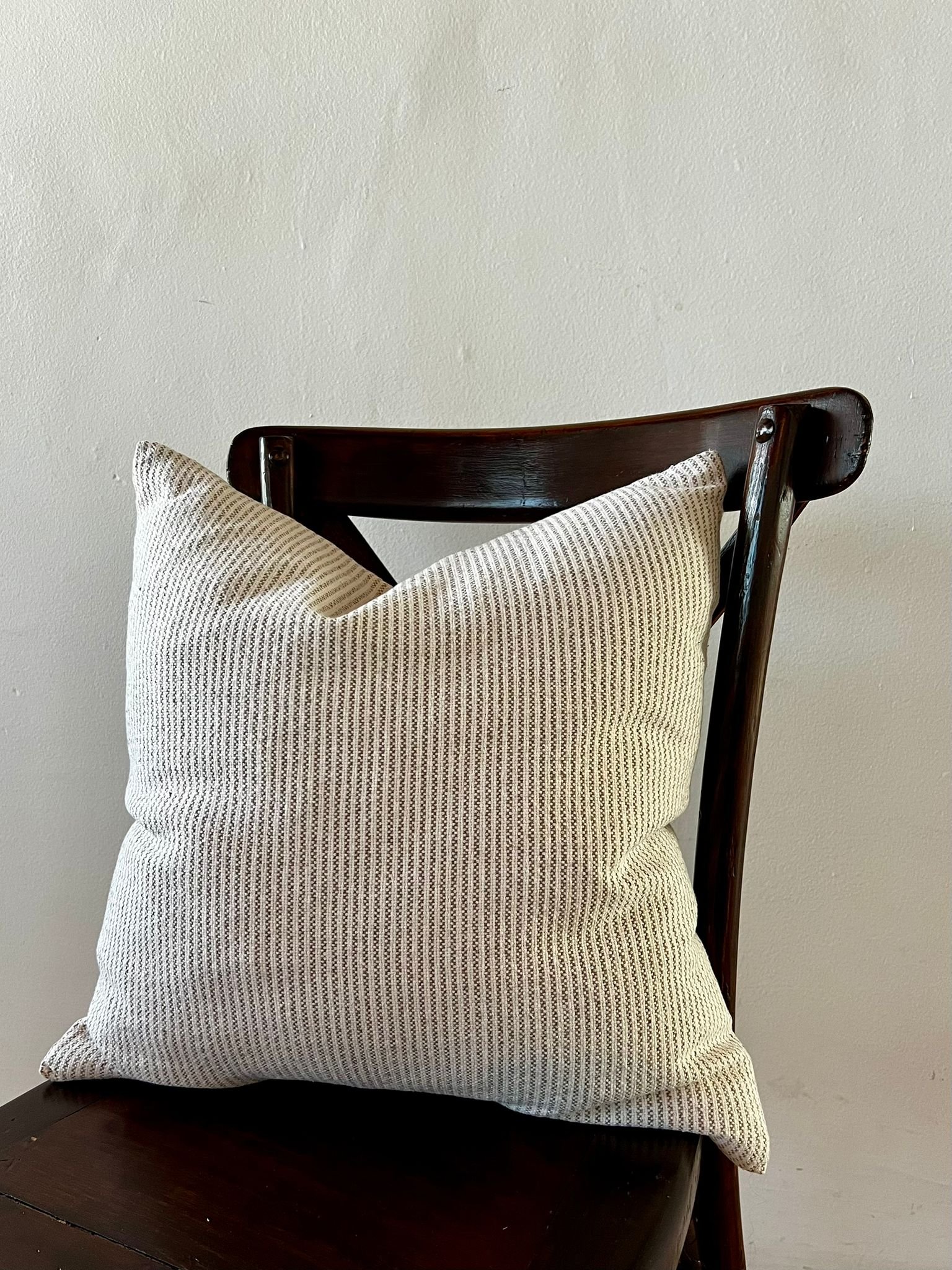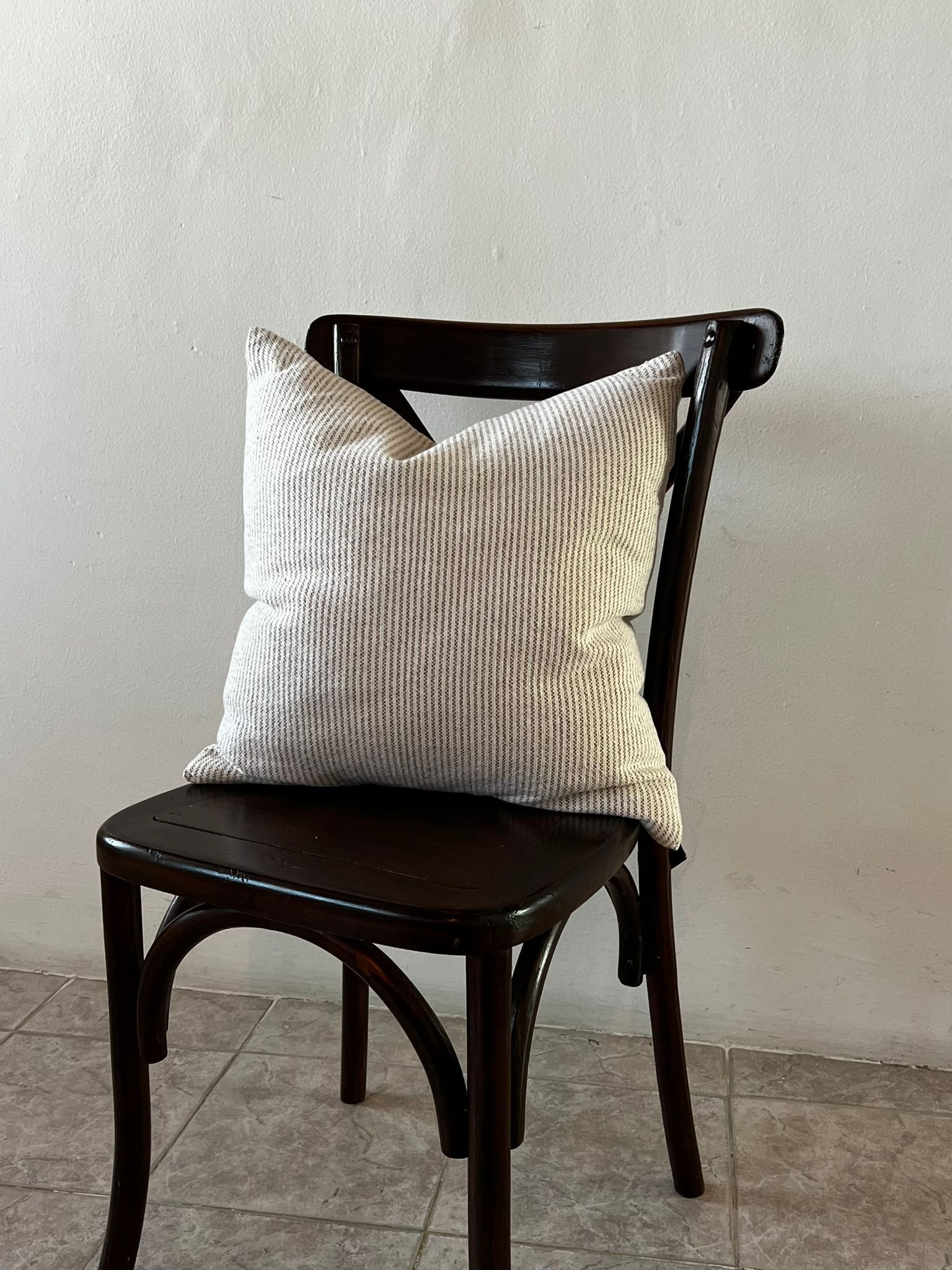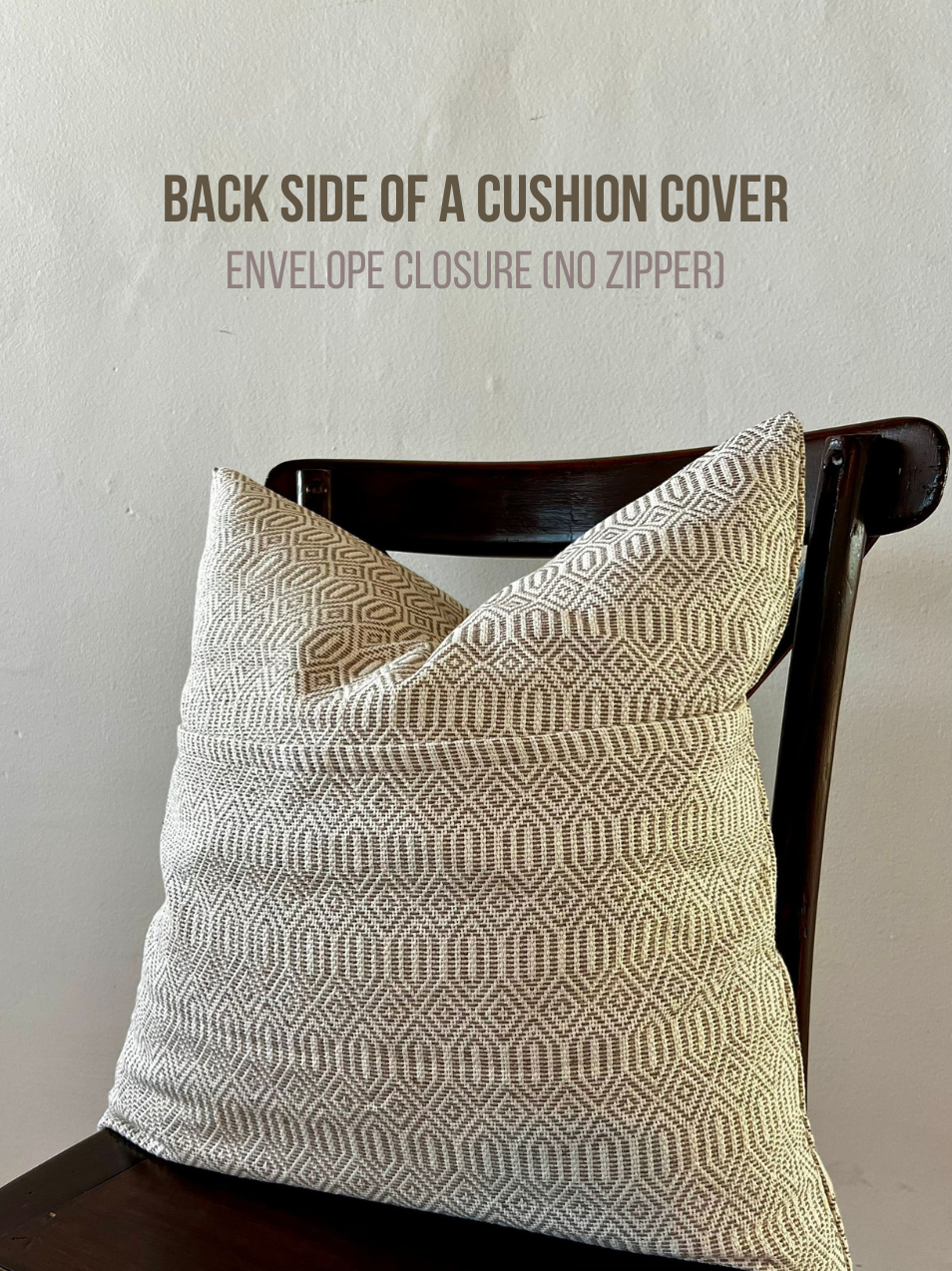 This cushion cover is handmade from 100% cotton by Ana. She creates each piece from scratch using fabric woven on a pedal loom, then sews it on a sewing machine. The cover has an envelope closure and does not include a zipper. We offer three sizes, and we are also happy to create a custom size upon request. It is made to order and will be ready to ship next Friday after your order is placed.