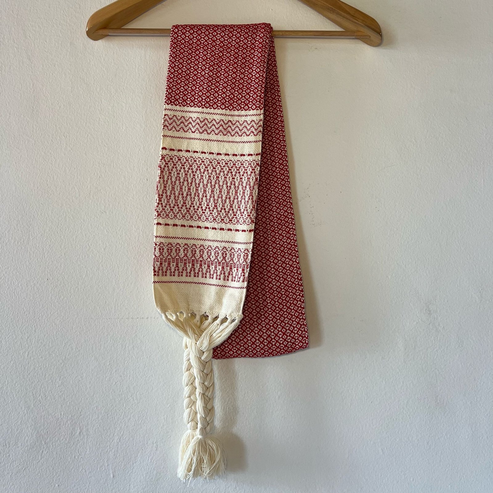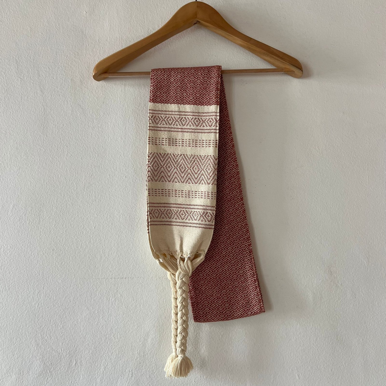 This faja was handmade by the Don Ramon family, artisans from Oaxaca. The cotton fabric is woven on a traditional pedal loom and then sewn into a double-layered faja. The single wrap size is designed to go around your waist just once, no excess fabric, just the support you need. Double wrap faja is designed to wrap around your waist twice, making it ideal for postpartum recovery, or for pregnant women who want belly and lower back support. We usually have some fajas in stock, just ask me which ones. Or you can also place an order, and we’ll have it ready within a week.